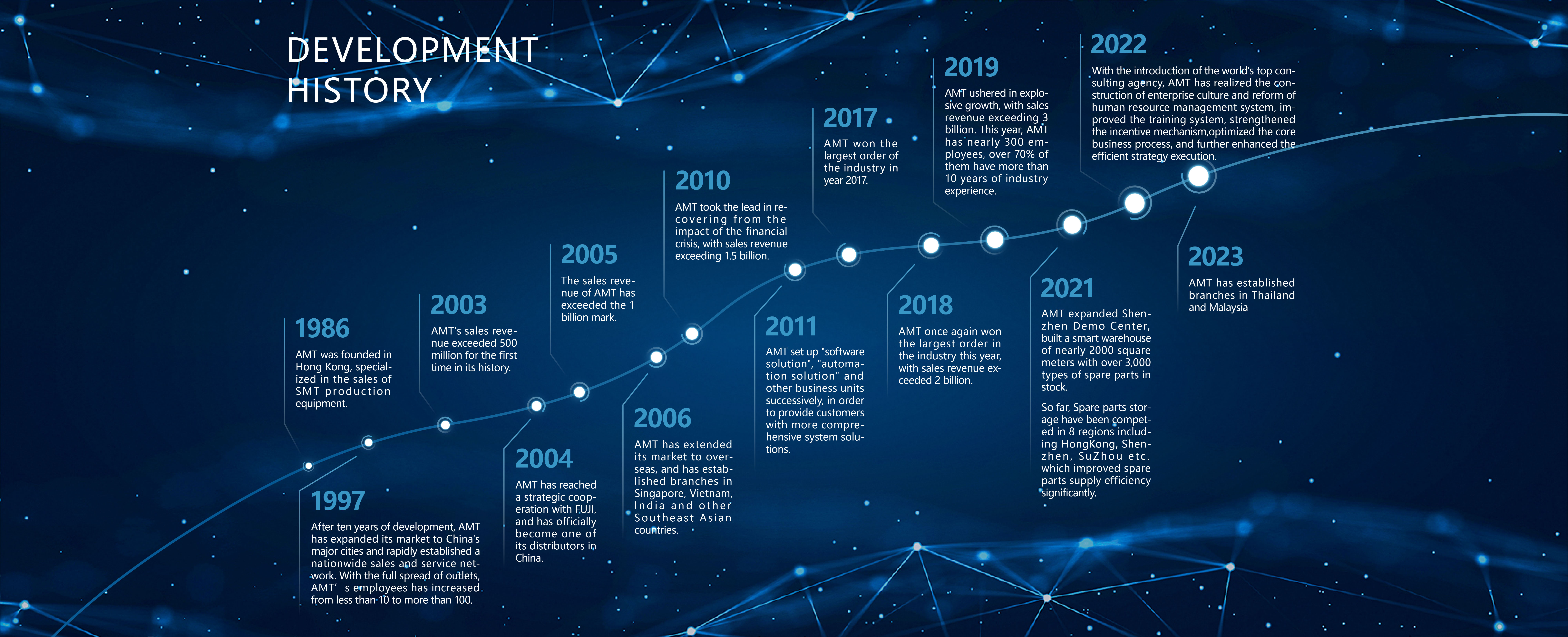AMT was founded in Hongkong, specialized in the sales of SMT production equipment.